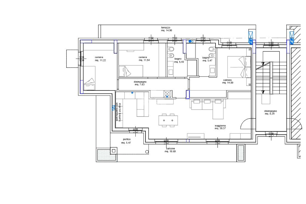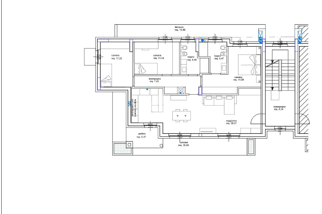 ampia zona giorno con accesso al grande balcone e terrazzo vivibile, perfetto per pranzi e relax all’aperto